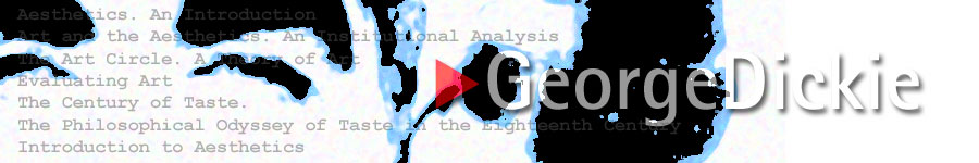 George Dickie (*1926) Diese Seiten versuchen einen einführenden Überblick über das Werk des amerikanischen Philosophen George Dickie zu geben. Sie finden hier eine kurze Biographie, einen Einführungstext, der die Grundgedanken seiner Ästhetik kurz darstellt, sowie eine kommentierte Dickie-Bibliographie mit der wichtigsten Primär- und Sekundärliteratur. Ich bemühe mich, diese Seiten auf aktuellem Stand zu halten und gegebenenfalls zu erweitern. Für Fragen, Anregungen, Kritik o.ä. bin ich dankbar. Dimitri Liebsch |